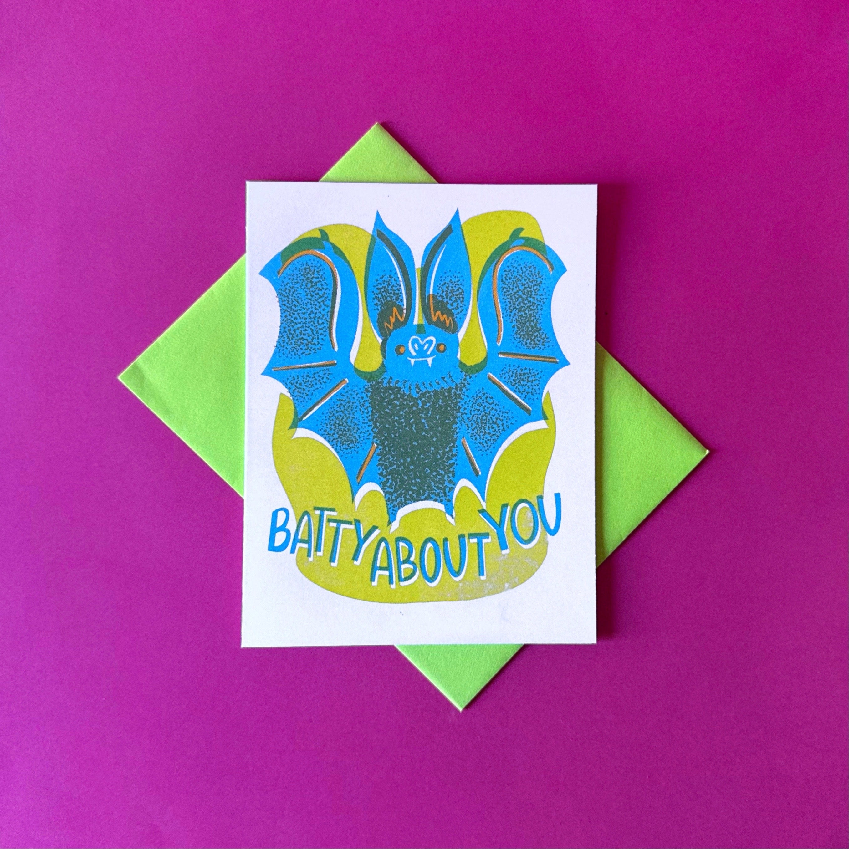 Letterpress is a printing process that has been around since the middle ages. Once the standard for printing; metal or wood type is inked and pressed against paper. The technique produces an impression in the paper making it different from offset or digital printing. Each color is applied separately, some of our products go through the press five or six times.