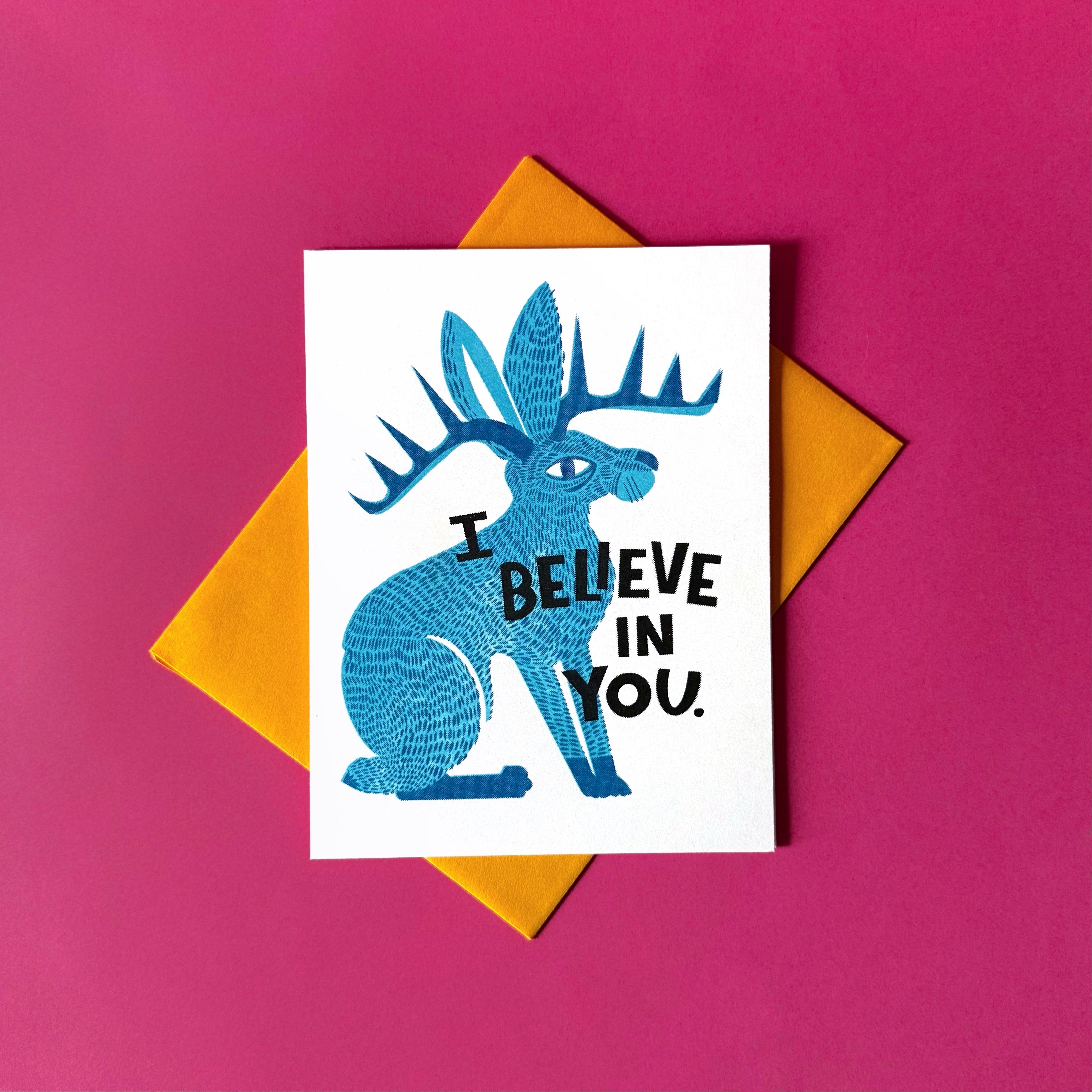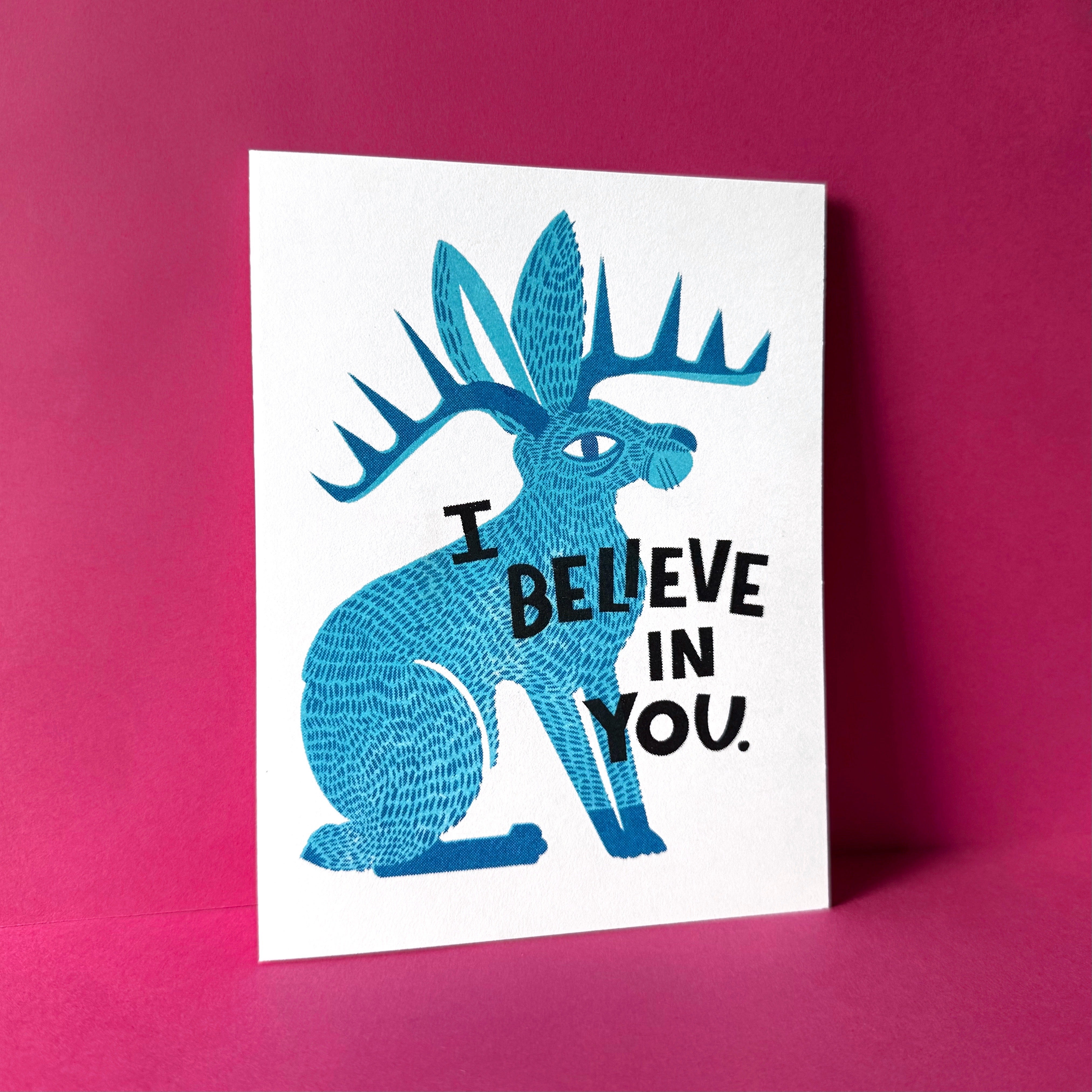I Believe in You Jackalope Risograph Encouragement Card